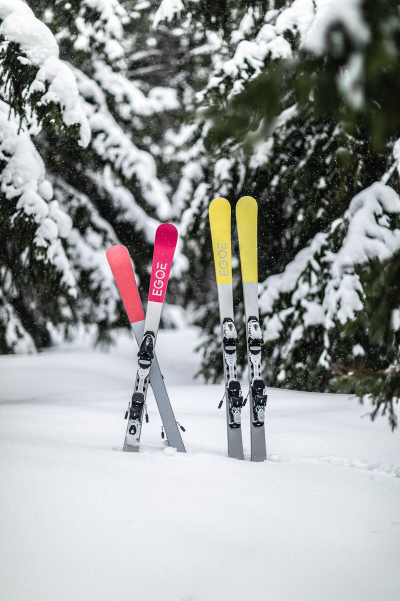We have made their aluminium design into a signature look. The basic material of the ski is titanal, which determines its hardness.