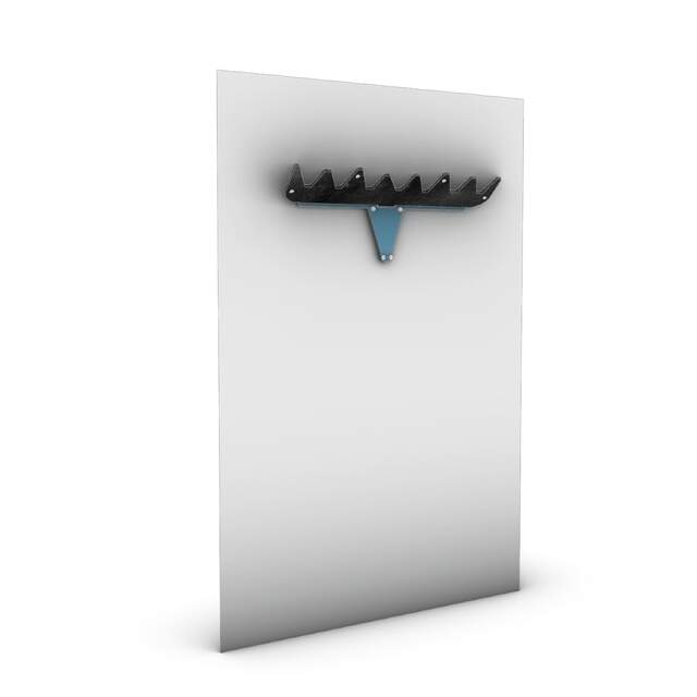 Uchwyt ścienny wykonany jest z gumy i stali cynkowanej, z wykończeniem w postaci lakieru proszkowego. Część gumowa przymocowana jest do części stalowej za pomocą czterech wkrętów i cały stojak pomieści 7 par nart.