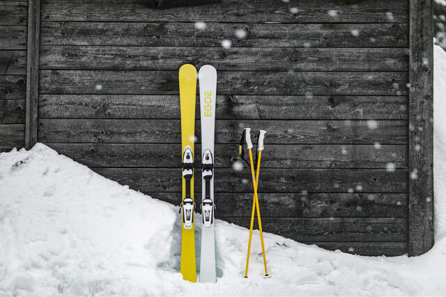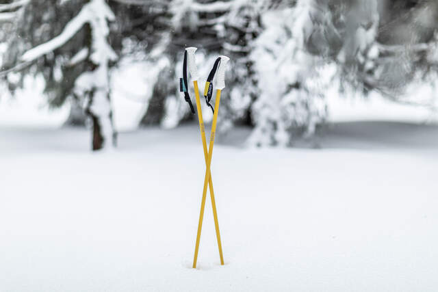 Dziecięce kijki narciarskie z aluminium z wygrawerowanym logo, w kilku wariantach kolorystycznych i długościach.